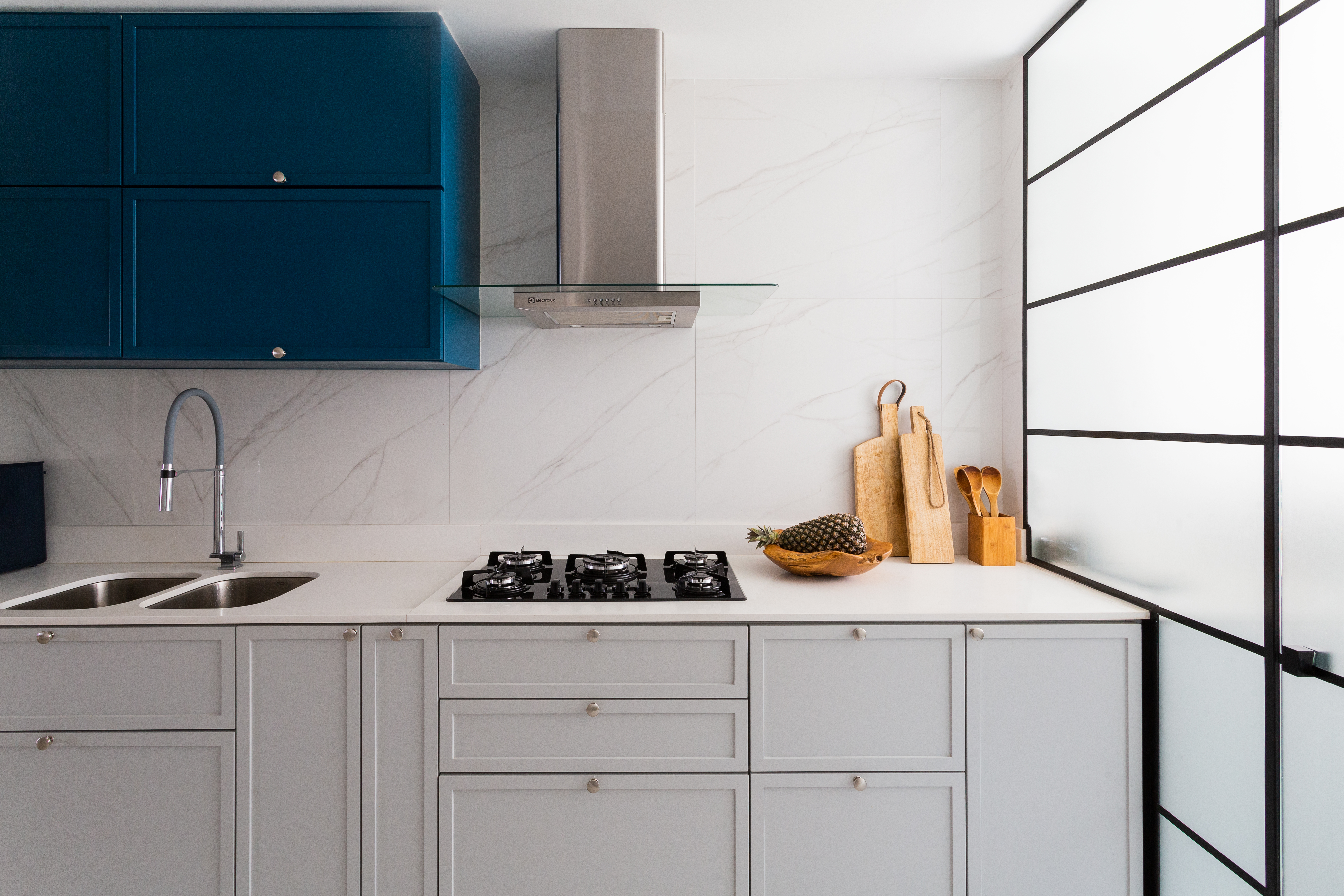 "Os detalhes que fazem o menos ser mais em uma cozinha funcional, minimalista."